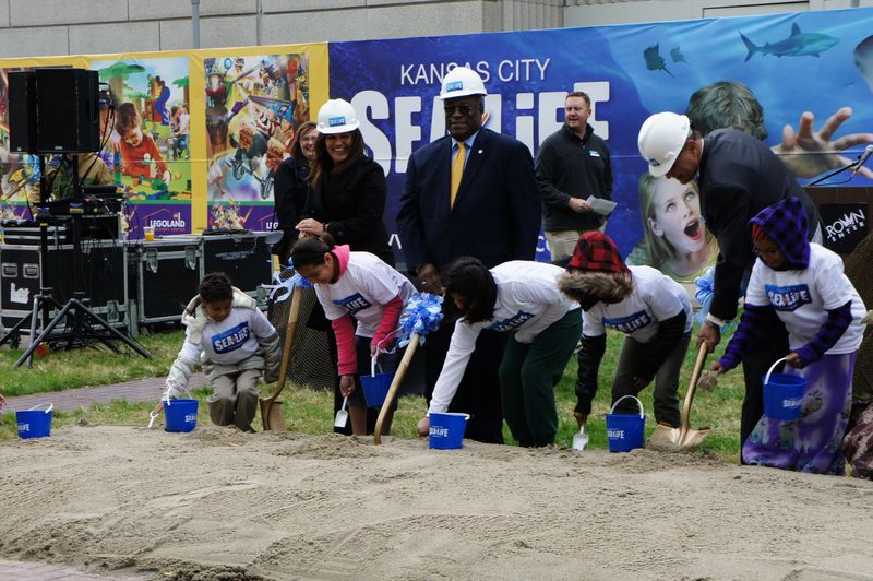 And going in right alongside the new LEGOLAND® Discovery Center will be the SEA LIFE Aquarium – Kansas City which is set to open ahead of schedule in April 2012. This will be the 5th aquarium of its kind in the USA and will be a full-on interactive educational experience for kids of all ages. Recently during its groundbreaking, Kansas City Mayor, Sly James, declared October 19, 2011 “K-Sea Day” in celebration of this fantastic new attraction in the metro. And of course we were there to capture it all! Even the ceremonial sand dig to officially kickoff the construction efforts.