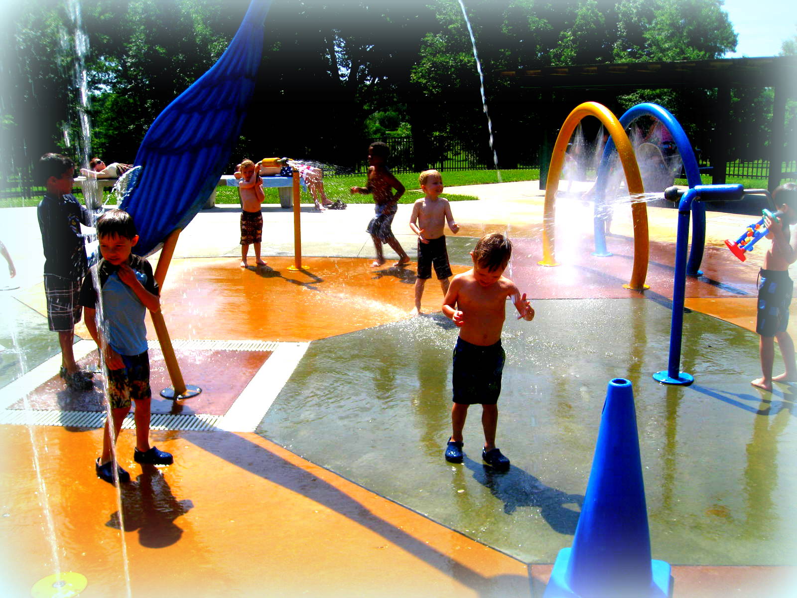 Their spray park/sprayground is completely FREE and open to the public and offers kids fun spots to run through water, get squirted, and just enjoy some cool relief from the hot summer sun. There are several shelter area tables around the perimter of the spray park, however you may want to bring towels or blankets for seating and picnic time.  So gather up your swimsuites, towels, sunscreen, food, drinks, and snacks and make a day of fun for the entire family!