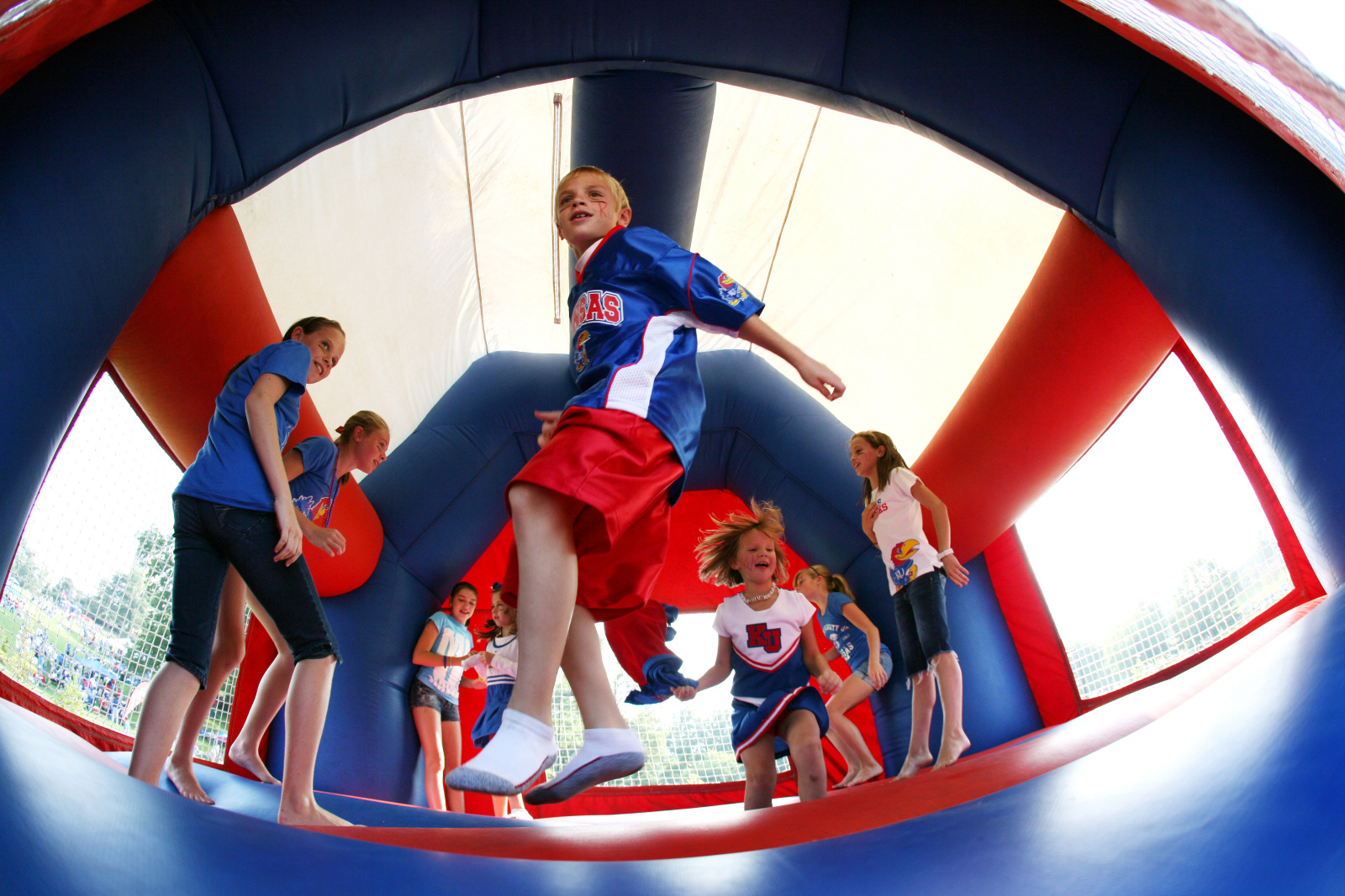The HyVee Hawk Zone features giant sized family fun for your half-pint Jayhawk fans, including: